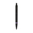 Parker IM Vibrant Ring Purple Ballpoint pairs all-black sleek and minimalist finishes with bold, vibrant ring accents. Satin black lacquer finish with amethyst purple ring accents, on a stainless steel barrel. Presented in a Parker gift box.
